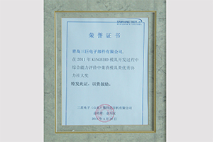 青島三巨電子部件有限公司在三星電子(山東)數(shù)碼打印機(jī)有限公司舉辦的KINGBIRD模具開(kāi)發(fā)過(guò)程中綜合能力評(píng)價(jià)獲得模具類優(yōu)秀協(xié)力社大獎(jiǎng);